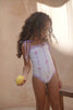 Our Aruba One Piece is a classic cut one piece, featuring tie shoulder straps for a little more movement and contrast trimming. We would recommend sizing up in this piece if your little one has a longer torso. This piece is lined for extra comfort.